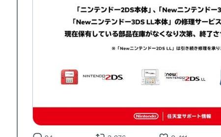 由于库存零件已耗尽,任天堂宣布自8月28日起停止接受New3DS游戏机的维修服务...