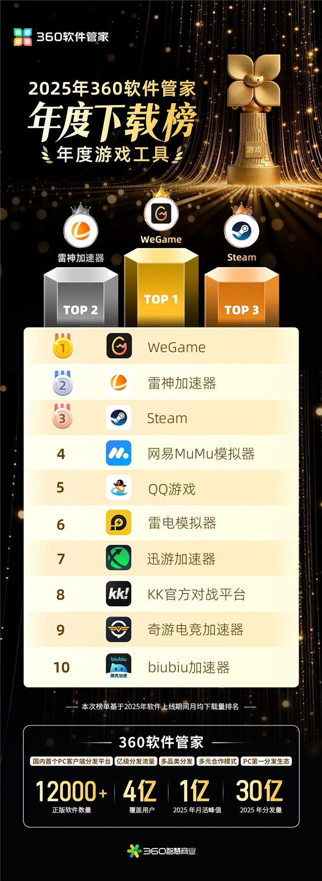 “年度游戏工具榜”中,WeGame、雷神加速器、Steam等凭借优秀的资源聚合、成熟的社区生态,以及性能优化、技能辅助等实用功能跻身前列,成为玩家提升游戏体验、便捷获取游戏资源的关键助力。