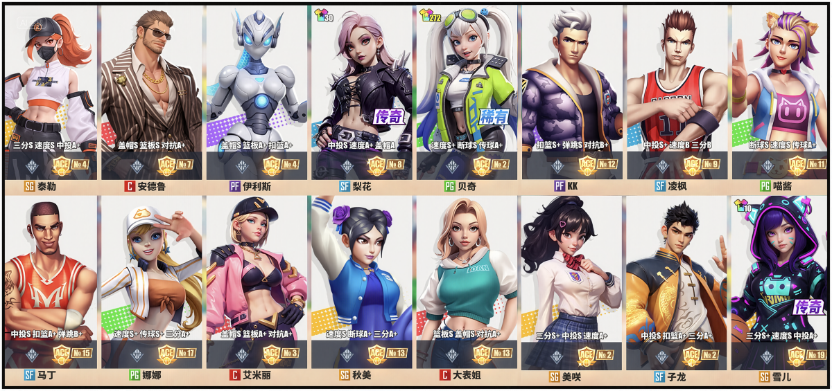 游戏内拥有超过80位原创球员,覆盖全部五个位置:控卫、分卫、小前、大前、中锋。每个球员均有专属技能与属性定位,技能设计贴合街头篮球的随性与竞技感,避免同质化,玩家可根据战术需求搭配不同阵容。比如分位切尔西的干拔投篮,让她在外线极具威胁,适合喜欢飘逸投射的玩家;中锋英澜的警戒姿态,让她成为内线防守的坚实屏障,是团队守护者的优选之一;大前海斗的闪电扣篮,则能瞬间点燃球场气氛,适合追求爆发力与观赏性的玩家。这些独特的技能设计,让每个球员都有鲜明的定位和玩法,大大丰富了玩家的选择空间。