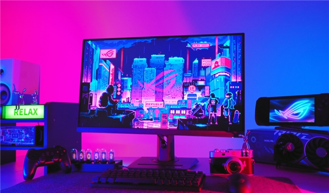 作为一款OLED电竞显示器,ROG XG27UQDMS的色彩表现也是强项。真10bit色彩加持,覆盖99%DCI-P3电影级色域,经过出厂预校准开箱即用,色彩精准度ΔE<2就问你强不强。还搭载HDR技术,符合VESA DisplayHDR True Black400标准,玩《赛博朋克2077》或看HDR电影时,那种深邃的黑和耀眼的亮,彻底征服你的视觉感官。它还搭载了OLED屏幕保护Pro技术,内置Neo接近传感器,人走开自动黑屏保护面板,返回时立即恢复游戏画面继续畅玩。再加上一系列功能设置,大幅降低OLED面板烧屏与烙印风险,长效畅玩才是游戏玩家的终极神器。