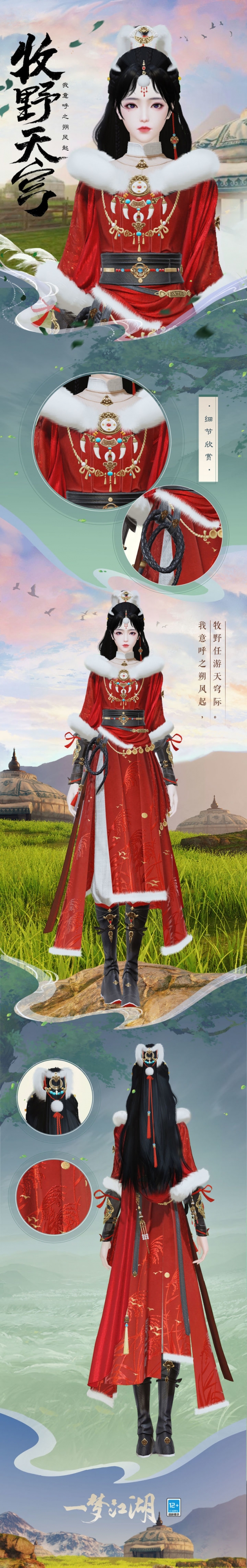 ★时装·牧野天穹以塞外特色服装为灵感制成,浓烈的色彩搭配狼牙与皮毛装饰,处处都彰显着草原儿郎的潇洒。