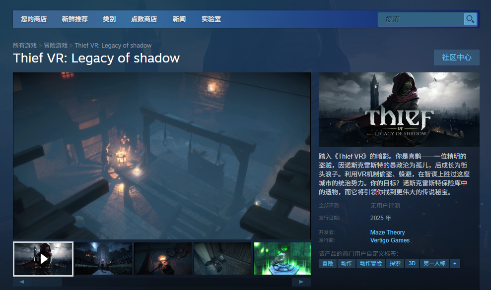 Steam平台购买链接:https://store.steampowered.com/app/2800080/Thief_VR_Legacy_of_shadow/。