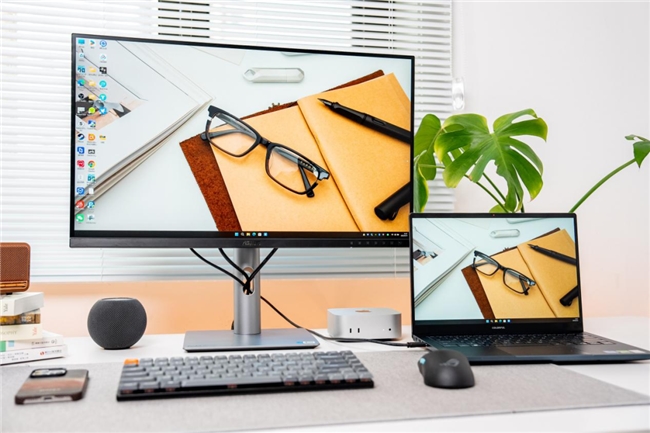 华硕ProArt创梦27专业显示器拥有丰富且全能的接口设计,让你的桌面彻底告别“蜘蛛网”。仅用一根USB-C线连接MacBook Pro,即可同时实现4K视频传输PD 96W快速充电和外接U盘的数据读写。它还搭载了HDMI接口,支持菊链式功能的DP接口以及USB-C和USB-C下行接口。不仅能够兼容各种设备,还能组建双屏或多屏显示。