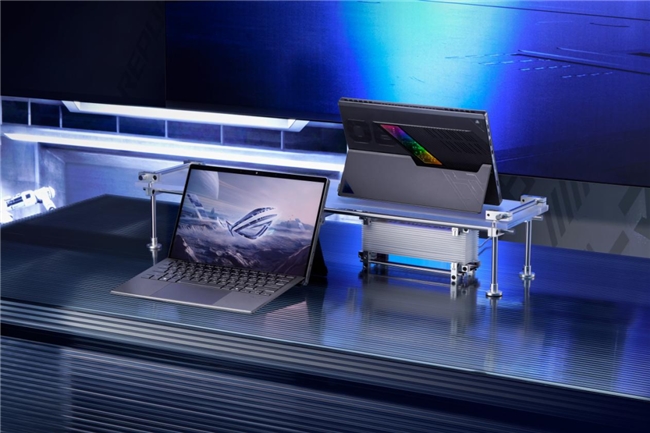 更妙的是背后无级悬停支架,170°任意开合角解锁三重创作形态,笔记本模式处理工作;平板模式随性批注;直立模式展示方案,每种姿态都是自带高级感的OOTD。而RGB倾斜透明视窗,以科幻感的霓虹灯效,在光影流转间尽显先锋不羁的创作个性。与此同时,ROG幻X 2025还内置70Wh大容量电池,为你的办公默默兜底。配合100W PD快充技术,从日出街拍到深夜审片,电量始终与创作欲同频共振,让移动创作真正摆脱电量焦虑。