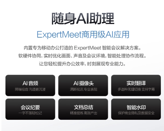 值得一提的是,华硕破晓Ultra提供70Wh大容量电池,可满足24小时持久续航,另外,快充30分钟即可回电50%,全天候会议、跨时区差旅也能从容应对。此外,华硕破晓Ultra还内置ExpertMeet 商用级AI应用,支持AI音频、AI摄像头、实时翻译、会议纪要、文档总结等功能,让AI成为提升办公效率的最佳助力。